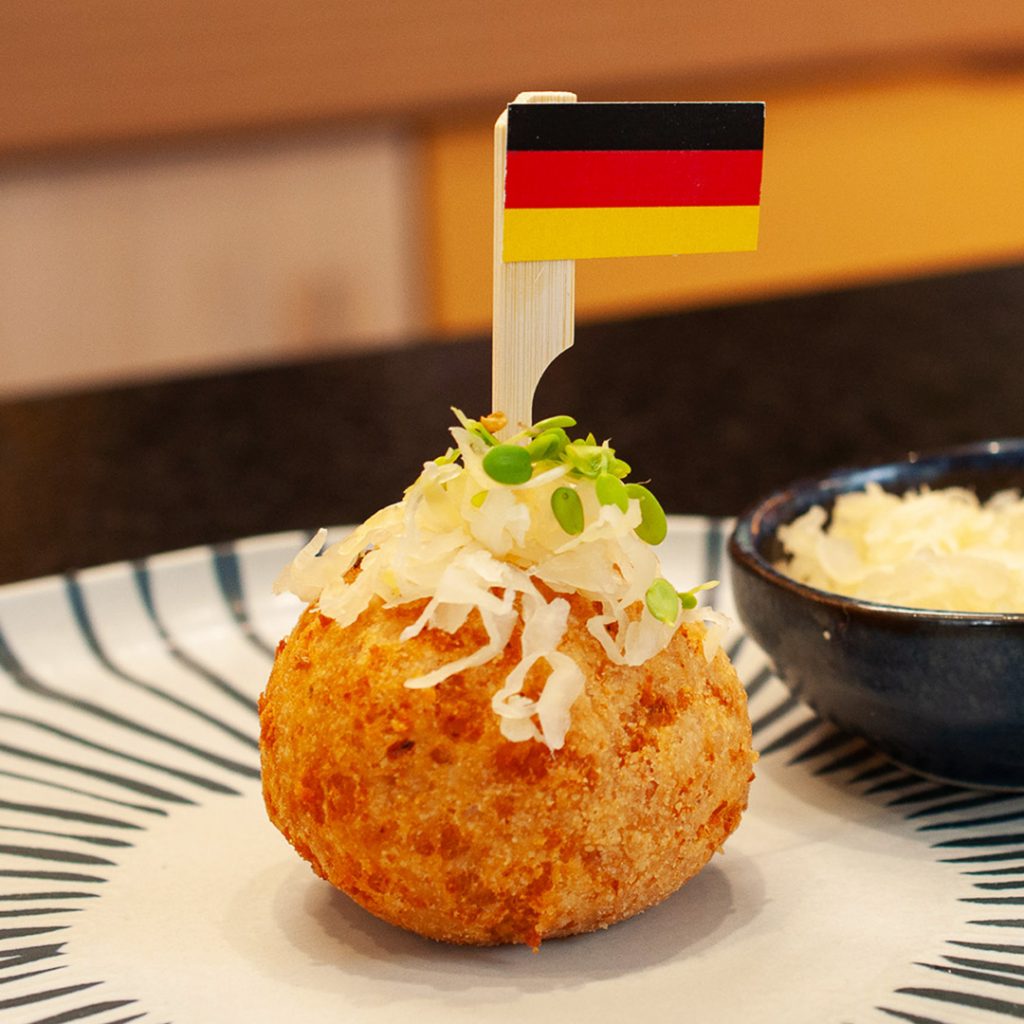 Inspirado na rica tradição da culinária alemã, o Bolinho de Joelho de Porco com Chucrute traz para a mesa todo o sabor rústico e reconfortante da Alemanha. Uma combinação irresistível de feijão branco, stinco de porco desfiado e temperos defumados, com um toque especial de chucrute no recheio, que garante acidez e equilíbrio ao paladar. Crocante por fora e macio por dentro, este bolinho é perfeito para surpreender em happy hours, petiscos ou como entrada em um cardápio temático germânico.